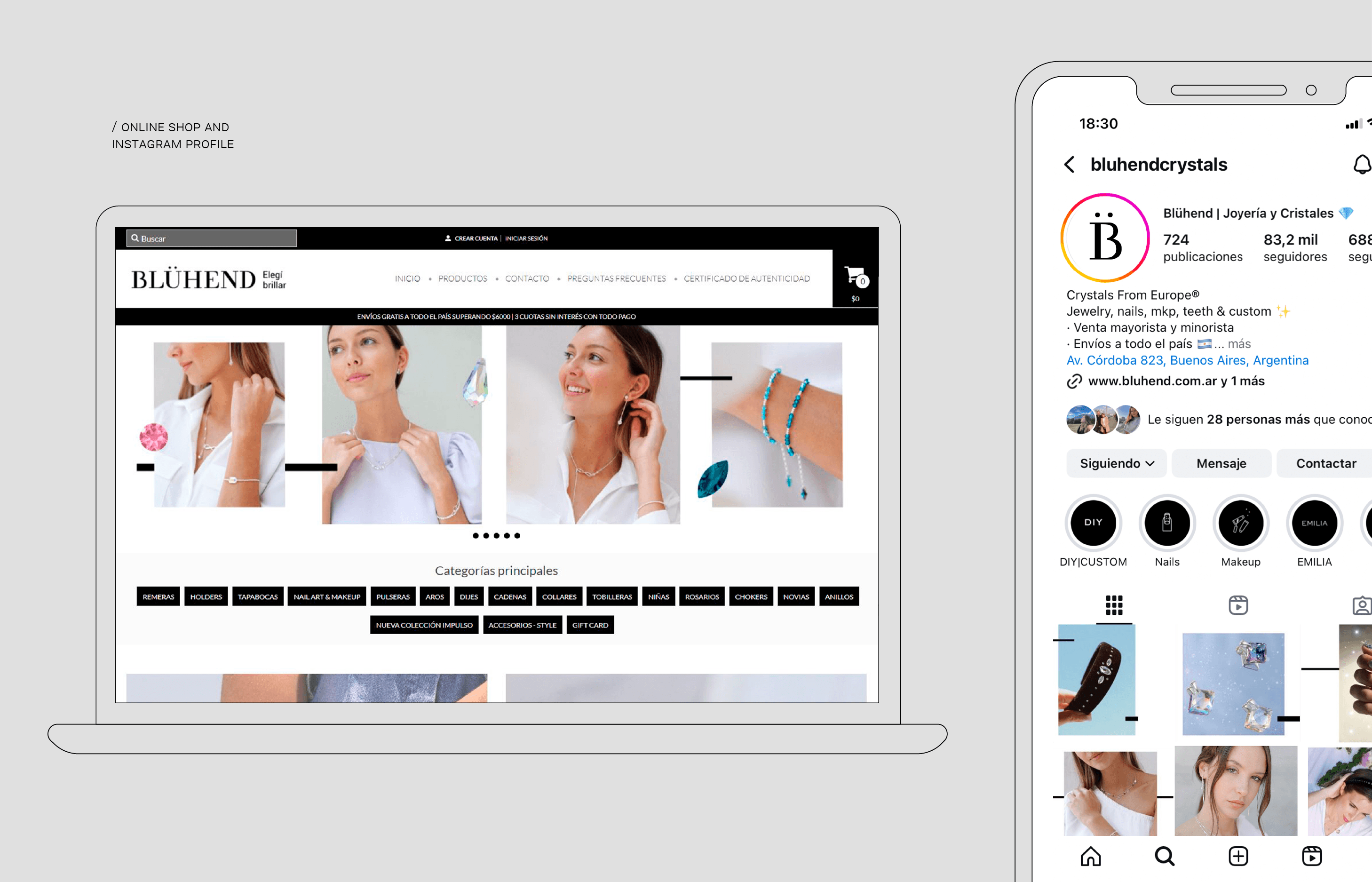 Visual identity development (rebranding). Environmental design for its two stores. Web design with TiendaNube (NoCode). PPT and mailing templates. Social media materials: posts, stories, videos and gifs. Daily interaction with client and suppliers.