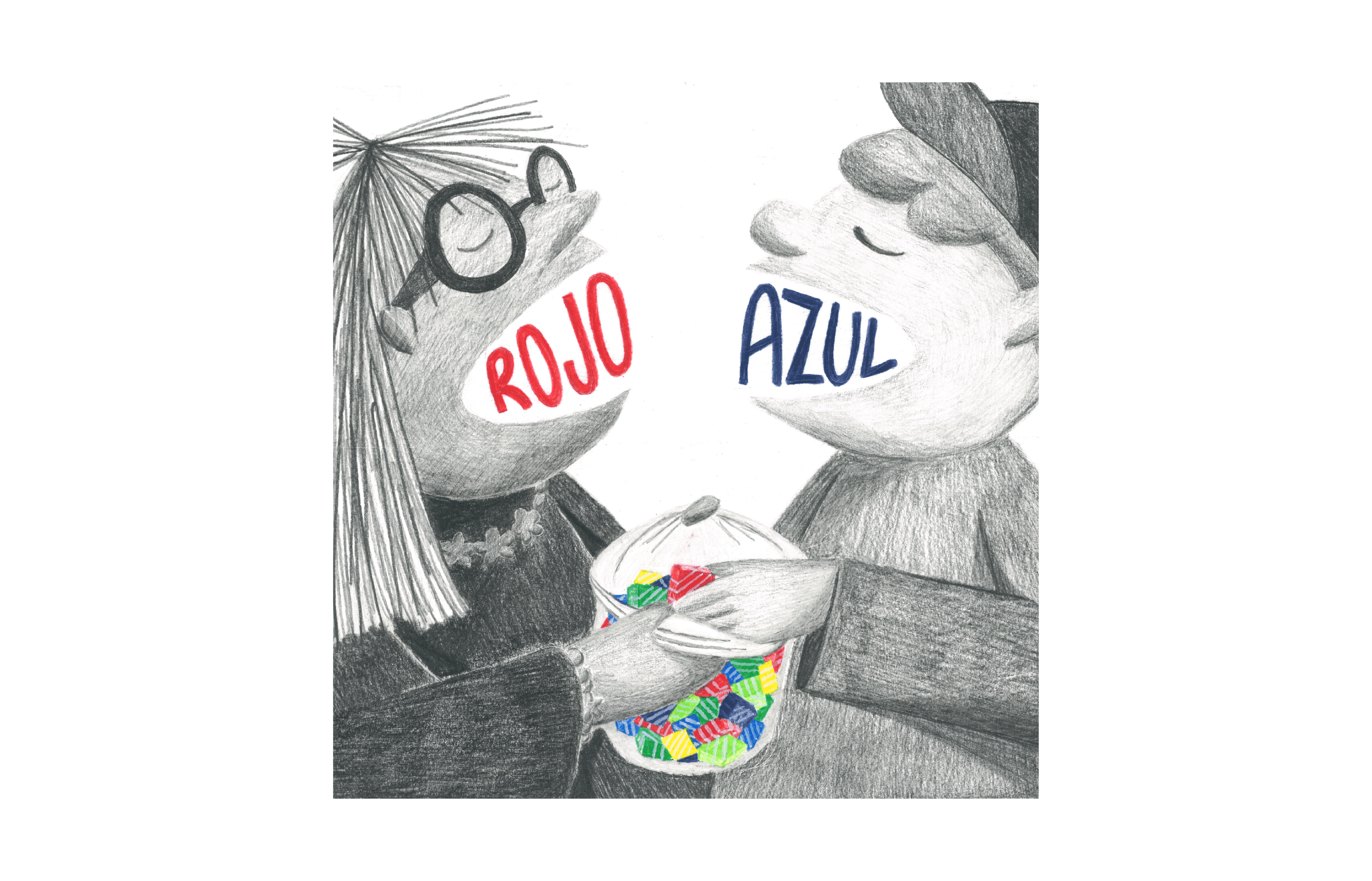 "La vuelta al mes" illustration collective invited me to participate in its February theme: "Predictions". I chose to illustrate that moment when, as a kid with a bag of sweets, you try to guess (or predict) which color will come out next. Pencils.