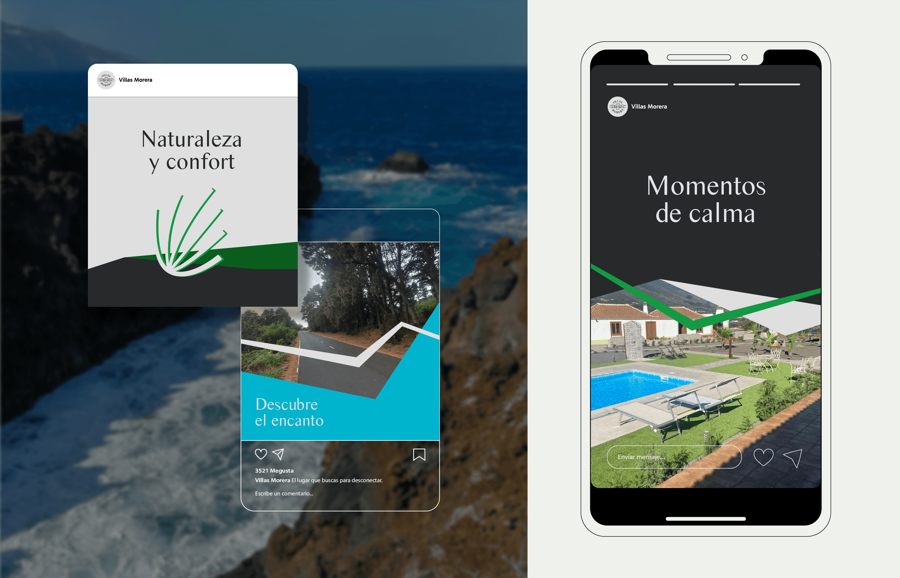 Villas Morera is a tourism project offering rural houses surrounded by nature, located on the island of La Palma, Canarias. I worked on the full branding, building a visual identity that reflects the calm, warmth and authenticity of the place. I also designed the new website, focused on usability and visual storytelling to highlight the beauty of the place and attract future guests.